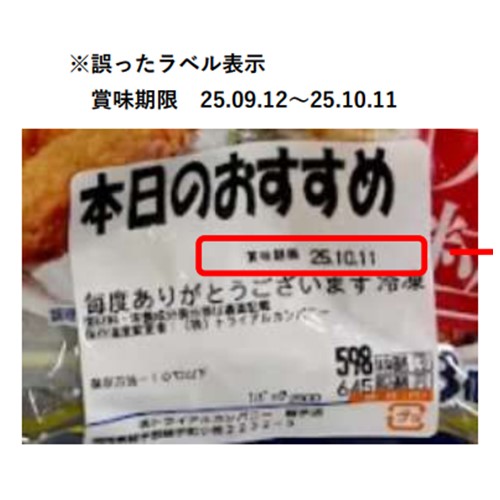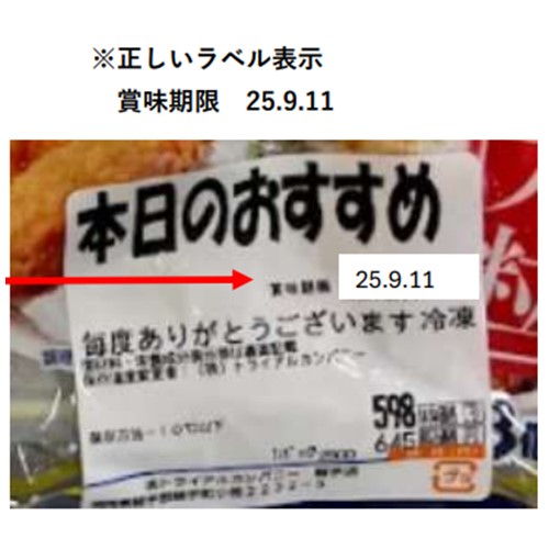 賞味期限の誤表示(誤:25.10.11、正:25.9.11)
