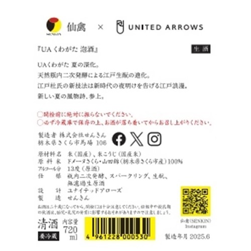 せんきん「仙禽 UAくわがた 泡酒」 - 返金/回収