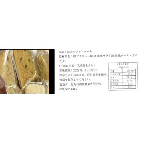YIC学院「シフォンケーキ」(JR小倉駅 JAM広場で販売) - 返金/回収