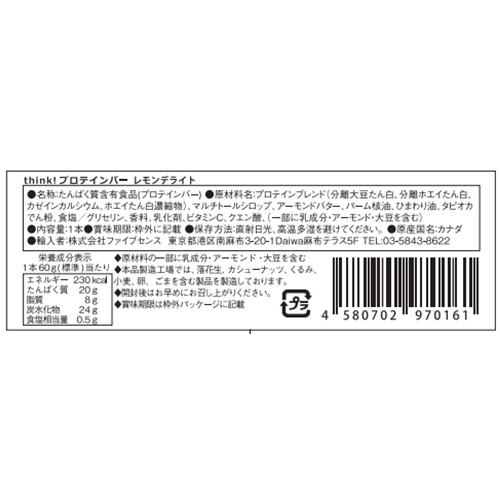ファイブセンス「think!プロテインバー レモンデライト」(ナチュラルローソンで販売) - 返金/回収