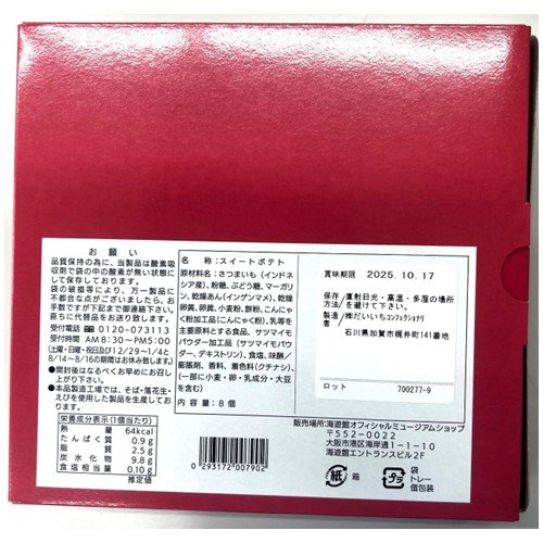 だいいちコンフェクショナリ「海遊館 真珠の塩すいーとぽてと」(海遊館オフィシャルミュージアムショップで販売) - 交換/回収