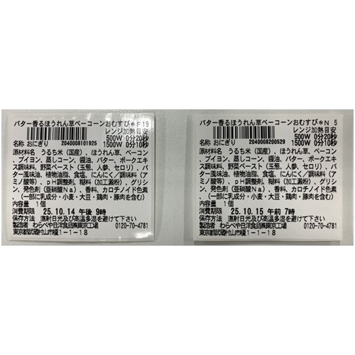 わらべや日洋食品「バター香るほうれん草ベーコーンおむすび」 - 返金/回収