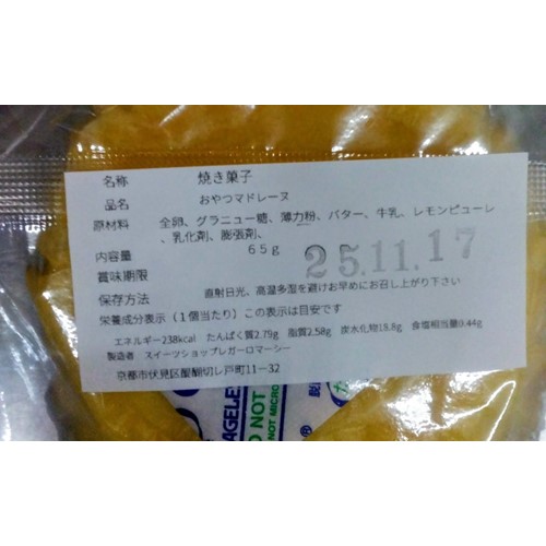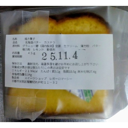 スイーツショップ レガーロマーシー「北海道バターカステラ、おやつマドレーヌ」 - 回収