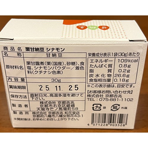 京都吉兆「栗甘納豆 シナモン」(京都駅構内「ASTY京都 京のみやげ」で販売) - 返金/回収