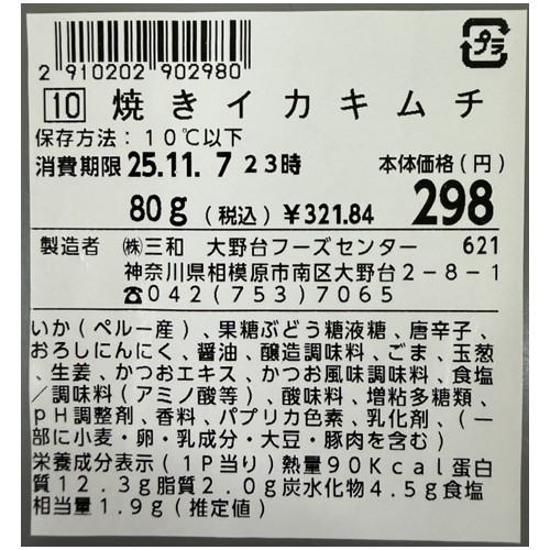 アレルゲン「いか、ごま、鶏肉」の表示欠落