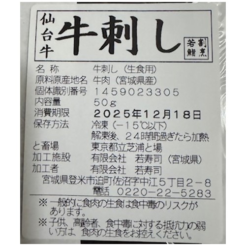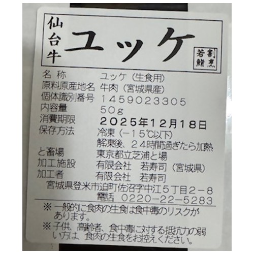 若寿司「ユッケ、牛刺し」 - 返金/回収