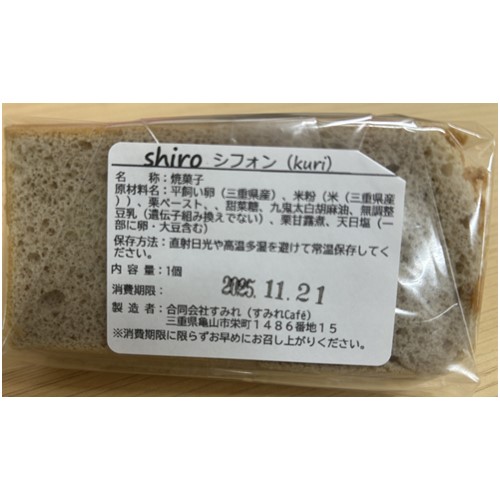 すみれ「shiroシフォン、komekoちーずけーき」(三重県庁ロビーで販売) - 返金/回収