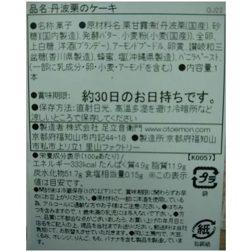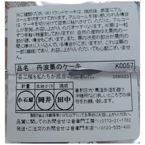 足立音衛門「丹波栗のケーキ」 - 交換/返金