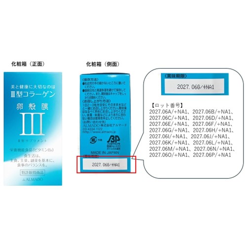 アルマード「Ⅲ型 卵殻膜サプリメント」 - 返金/回収