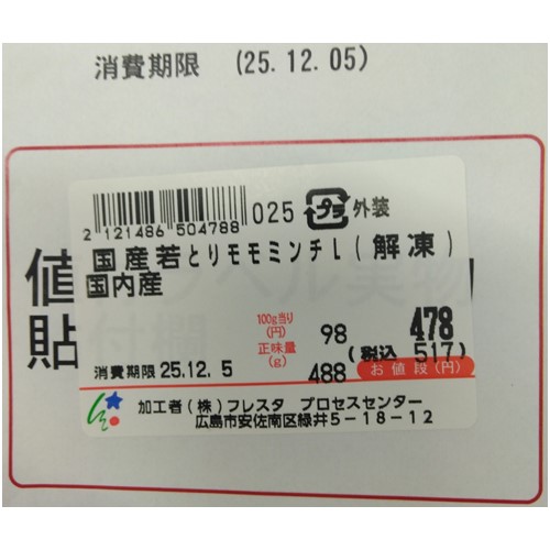 フレスタ「国産若とりももミンチL(解凍)」 - 回収
