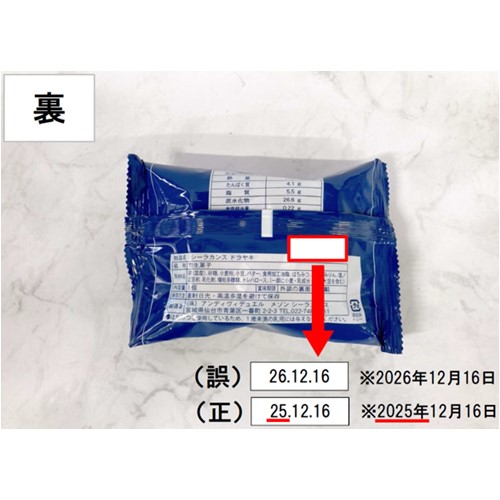 賞味期限の誤表示(誤:26.12.16、正:25.12.16)