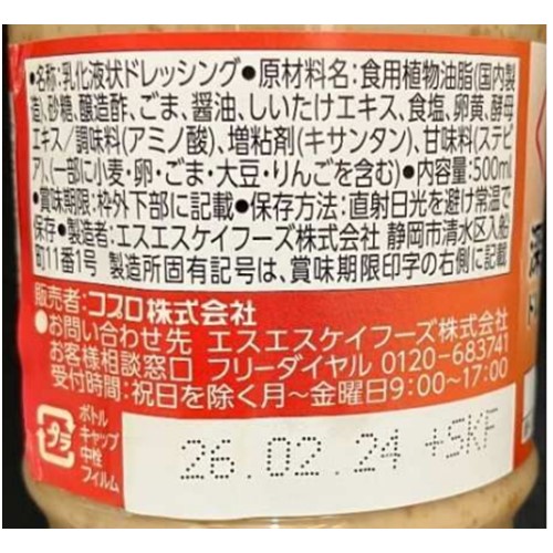 エスエスケイフーズ「くらし良好 深煎りごまドレッシング」 - 返金/回収