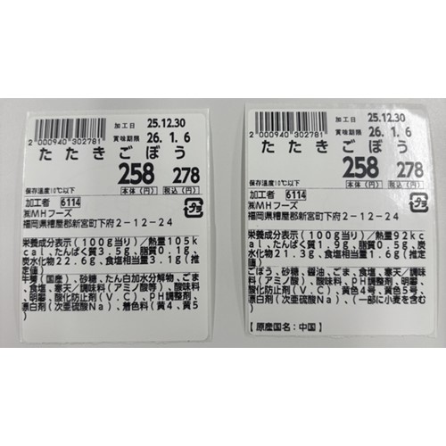 心夢「たたきごぼう」(出店テナントの一部店舗で販売) - 返金/回収