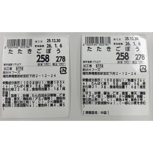 むすんでひらいて「たたきごぼう」(出店テナントの一部店舗で販売) - 返金/回収