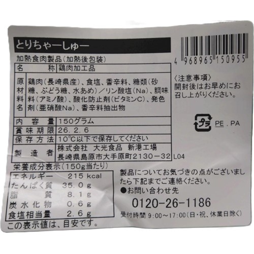 大光食品「とりちゃーしゅー」(長崎県、福岡県のスーパー等で販売) - 交換/回収