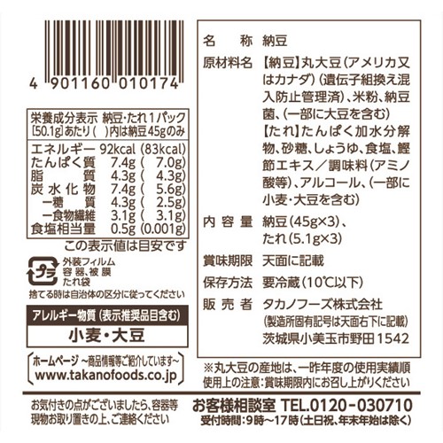 タカノフーズ「納豆:おかめ仕立てミニ3 九州うまかたれ」 - 返金/回収