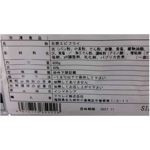 クラレイ「天然エビフライ」 - 交換/返金