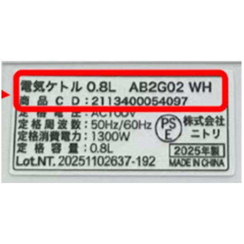 ニトリホールディングス「電気ケトル0.8L(4色)」 - 交換/返金