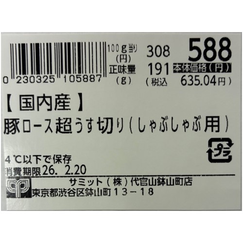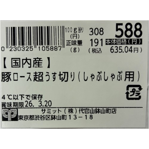 サミット(代官山鉢山町店)「豚ロース超うす切り(しゃぶしゃぶ用)200g及び300g」 - 返金/回収