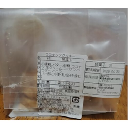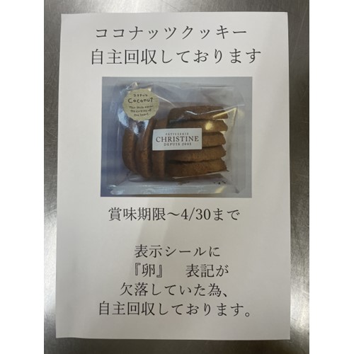 クリスティーヌ(店舗)「ココナッツクッキー」 - 交換/返金
