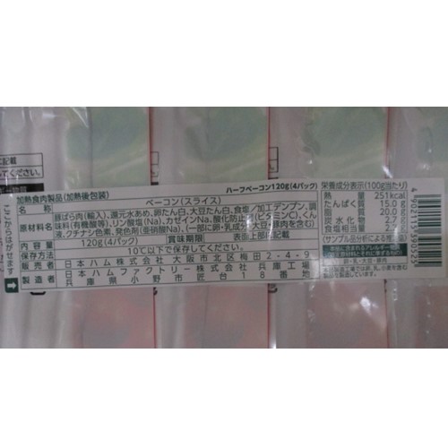 日本ハムファクトリー「ニッポンハムのハーフベーコン標準4枚入り×3パック/×4パック」 - 返金/回収