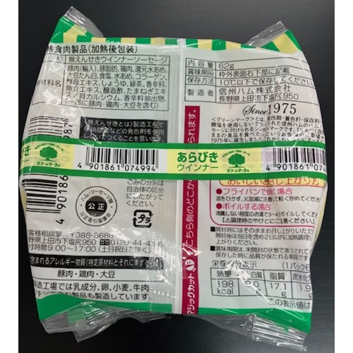信州ハム「グリーンマーク無えんせきあらびきウインナー62g×2」 - 返金/回収