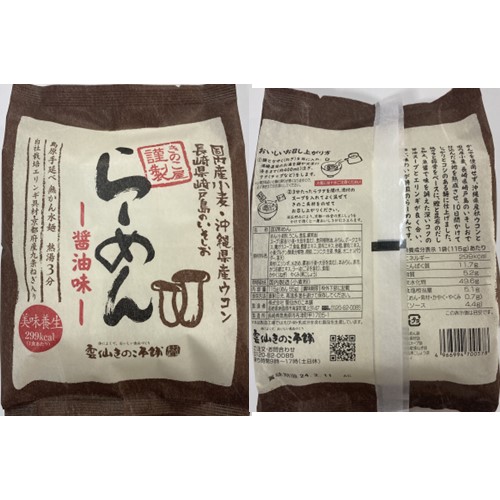 雲仙きのこ本舗「らーめん醤油味、担々麺」 - 返金/回収