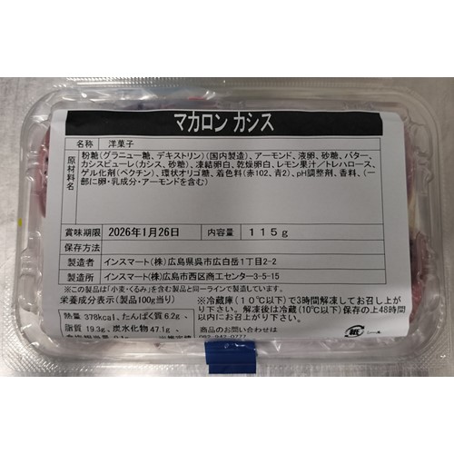 インスマート(広島工場敷地内自動販売機)「マカロンカシス、マカロンキャラメルサレ」 - 返金/回収