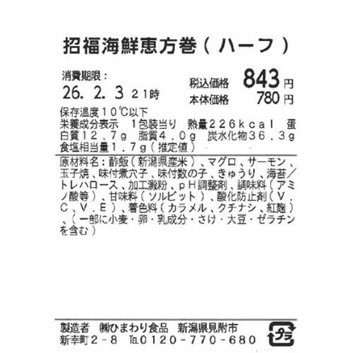ひまわり食品「招福海鮮恵方巻(ハーフ)」(味燦舞店で販売) - 回収