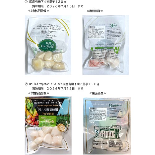 クローバー食品「国産有機下ゆで里芋120g、ほか28商品」 - 回収命令